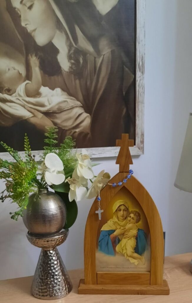 - Kapliczkę umieszczamy tam, gdzie toczy się życie rodzinne: przy wspólnym stole, w kuchni lub w pokoju gdzie bawią się dzieci. Dobrze jest zapalić świecę i postawić świeże kwiaty. Każda kapliczka posiada futerał oraz zeszyt z podanymi propozycjami rozważań i modlitw.